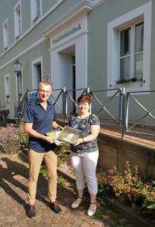 Peter Fuhrmann von der Unibuchhandlung Hilbert spendete der Stadtbibliothek Germersheim fünf Bilderbücher in ukrainischer Sprache. Bibliotheksleiterin Iris Müller freute sich über diese tolle Buchspende und bedankte sich bei Herrn Fuhrmann recht herzlich.