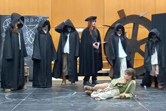 Die Theater-AG des Goethe-Gymnasiums Germersheim ließ am 4. und 5. Juli 2024 die Raben über die Aulabühne fliegen. In einer Inszenierung des „Krabat“ nach Otfried Preußler brachten 17 Schülerinnen und Schüler des GGG zusammen mit Frau Christmann, Herrn Metter und Frau Zimprich den Zauber der Freundschaft und Liebe, die stärker sind als Verzweiflung und Tod, auf die Bühne.