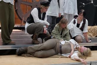 Als Betteljungen beeindruckten Carolina Langolf (MSS 11) und Lara Lobacz (9b), als alter Mann und Rabe zeigte Alina Schröder (10y) große Leidenschaft und als weitere Raben, Tiere, Kirmesbesucher und Kantorkamädchen bezauberten Sophie Friedewald (10y) und Alicia Rund (7y). Ein großes Lob geht auch an Alena Grimm (5e).
