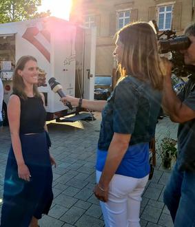 Citymanagerin Tami Ziegler im Gespräch mit der SWR-Reporterin Denise Schneider.