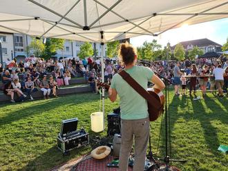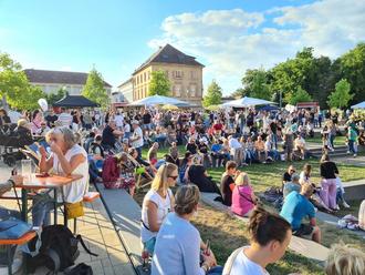 Schon früh füllte sich der Paradeplatz. Die Besucher schlenderten durch die Reihen der Marktstände, bestellten sich etwas zum Essen und zum Trinken, suchten sich ein schönes Plätzchen an den (Steh-) Tischen oder nutzten die Liegestühle auf dem Rasen, während im Hintergrund ein Musiker für den perfekten Sound zum Feierabend sorgte.