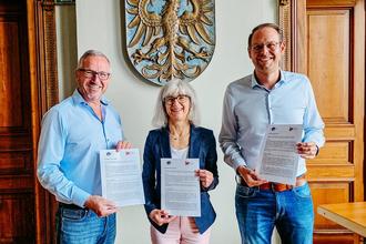 Die Vereinbarung wurde von Herrn Wolf, stellvertretender Schulleiter und Musiklehrer des Goethe-Gymnasium Germersheim, Frau Dr. Bienroth vom Freundeskreis des Goethe-Gymnasium Germersheim sowie Bürgermeister Marcus Schaile als Vertreter der Stadt besiegelt.