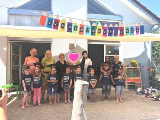 Nach dieser besonderen Showeinlage lag Abschiedsstimmung in der Luft und irgendwie wurde es allen ein bisschen schwer ums Herz. Unsere 8 Schulanfänger durften voller Stolz mit ihren großartigen Schultüten in den Garten einlaufen. Für jeden Einzelnen hatte unsere Leitung Sabrina Hellmann ein paar schöne Worte vorbereitet. Schöne Erinnerungen, lustige Anekdoten und auch kleine Ausblicke in die Zukunft. Wer weiß, vielleicht bewahrheitet sich ja die ein oder andere Voraussagung?!