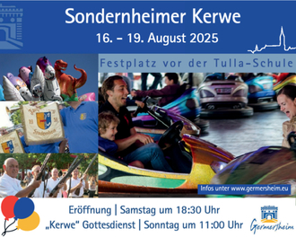Vom 16. bis 19. August 2025 verwandelt sich der Festplatz vor der Tulla-Schule erneut in einen lebendigen Treffpunkt für Geselligkeit, Musik und gute Laune. Die Sondernheimer Kirchweih, deren Ursprünge bis ins Jahr 1565 zurückreichen, ist ein fester Bestandteil unseres kulturellen Lebens und gelebter Ausdruck örtlicher Verbundenheit.