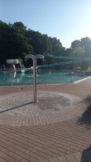 Direkt gegenüber befindet sich das Waldschwimmbad. Neben dem 25 Meter Schwimmerbecken sind auch eine 40 Meter lange Rutsche und ein Sprungturm (3m) vorhanden. Zum Ausruhen gibt es eine Liegefläche teilweise mit großem Baumbestand.