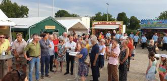 Am vergangenen Wochenende feierten die Sondernheimer Bürgerinnen und Bürger sowie viele Gäste wieder die traditionelle Sondernheimer Kerwe auf dem Kerweplatz vor der Gottfried-Tulla-Grundschule. Trotz der großen Sommerhitze war schon am Eröffnungsabend zu erkennen, dass die „Sunnemer Kerwe“ so beliebt ist wie eh und je. Die Besucherresonanz war groß, die Stimmung bestens. Offizieller Beginn des Festwochenendes war am Samstagabend, traditionsgemäß stellten die „Sunnemer Briggewoochbuwe un’ -mädle“ den Kerwebaum. Der Schützenverein 1957 Diana e.V. grüßte die Kerwebesucher mit einem überzeugenden Salut und der Fanfarenzug des Musikvereins 1959 Sondernheim e.V. sorgte für die musikalische Umrahmung der Eröffnung. Und dann hieß es „Prost auf die Sunnemer Kerwe“, und es durfte gefeiert werden. Die folgenden Impressionen bieten eine fotografische Zusammenfassung des Eröffnungsabends.