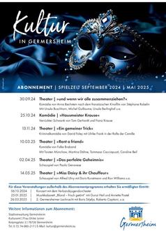 Informationen zum Theaterabonnement erhalten Sie telefonisch unter den Telefonnummern 07274 960 – 217, - 283 oder schreiben Sie uns unter kultur@germersheim.eu