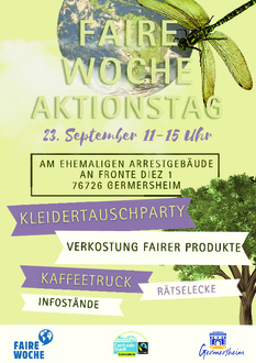 Die Faire Woche soll Impulse geben, das eigene (Konsum-)Verhalten kritisch zu beleuchten, zu informieren und alternative Handlungsmöglichkeiten aufzuzeigen. In Germersheim gibt es in diesem Jahr zahlreiche Aktionen und Veranstaltungen. Von Informationsveranstaltungen über Ausstellungen und Mitmachaktionen ist alles dabei. „Wir freuen uns, dass in Germersheim nicht nur durch die Steuerungsgruppe der Fair Trade Stadt, sondern auch durch viele weitere Akteure ein vielfältiges Veranstaltungsprogramm zusammengekommen ist,“ so Bürgermeister Marcus Schaile.