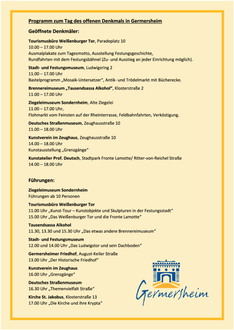 Auch der Stadt Germersheim ist es ein wichtiges Anliegen, ihr Kulturerbe der Festungsanlage in die Öffentlichkeit zu tragen und beteiligt sich daher in diesem Jahr wieder aktiv an der bundesweiten Aktion.
