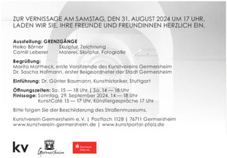 Im Kunstverein Germersheim treffen in der dritten Ausstellung des Jahres unter dem Thema „GRENZGÄNGE“ zwei namhafte Künstler aufeinander, die ihre Arbeiten in den Räumen des Zeughauses präsentieren.