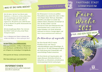 Die Faire Woche ist der größte bundesweite Aktionszeitraum zum Fairen Handel in Deutschland. In dem Zeitraum finden bundesweit Aktionen und Veranstaltungen statt, die auf den Fairen Handel aufmerksam machen. In diesem Jahr dreht sich unter dem Motto „Fair. Und kein Grad mehr“ alles um das Thema „Klimagerechtigkeit“.