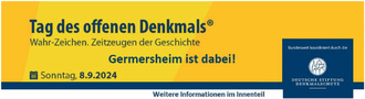 „Am Tag des offenen Denkmals können wir unseren Besucherinnen und Besuchern zeigen, dass unsere Denkmäler längst zu einem „Wahr.Zeichen“ der Stadt geworden sind, wie etwa neben unserer imposanten Festungsanlage auch die frühere Ziegelei in Sondernheim oder das Brennereimuseum in der ehemaligen Fabrik der Firma Berkel. Ich freue mich, dass wir unseren Gästen auch in diesem Jahr wieder ein abwechslungsreiches und kreatives Programm anbieten können. Ich lade daher alle Bürgerinnen und Bürger recht herzlich dazu ein, den Tag bei uns in Germersheim zu verbringen und die vielfältigen kostenfreien Angebote in Anspruch zu nehmen“, so Bürgermeister Marcus Schaile.