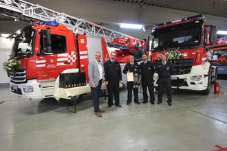Als weiteres Highlight wurden das neue Wechselladerfahrzeug und die neue Drehleiter in Dienst gestellt. Das Wechselladerfahrzeug wurde bereits 2020 beschafft, konnte jedoch aufgrund der Pandemie auch nicht in einem entsprechenden Rahmen übergeben werden. Das Wechselladefahrzeug wurde bei der Firma F&B Nutzfahrzeug-Technik GmbH aus Hagenbach aufgebaut. Als Fahrgestell dient ein Mercedes Arocs 2645. Die Drehleiter mit Korb ersetz das Teleskopgelenkmastfahrzeug aus dem Jahr 2002 und wurde im Juli diesen Jahres von der Firma Rosenbauer Deutschland GmbH in Karlsruhe übernommen.