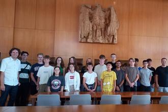 Diese und andere interessante Einblicke erhielten die Schüler/innen, begleitet von ihren Fachlehrern, im Rahmen der 90-minütigen Führungen durch den Besucherdienst. Angefangen mit der „Ahnengalerie“ oft noch lebender, aber ausgeschiedener Richter/innen im Foyer, über den Sitzungssaal, mit dem 600 kg schweren Bundesadler aus Holz von Hans Kindermann, bis hin zu dem Beratungszimmer der amtierenden Richter/innen, das, geschmückt durch Portraits der (ehemaligen) Verfassungspräsidentinnen und Präsidenten durch namhafte Künstler/innen, den unterschiedlichen Kunstgeschmack der Persönlichkeiten erahnen ließ. Auch zur Geschichte, Zusammensetzung, Arbeitsweise, der Architektur der verschiedenen Gebäudeteile sowie zu den Richterroben, und was diese über die Emanzipation des Gerichts aussagen, gab es interessante und spannende Informationen. Ein rundum gelungener Ausflug, da waren sich am Ende alle einig.