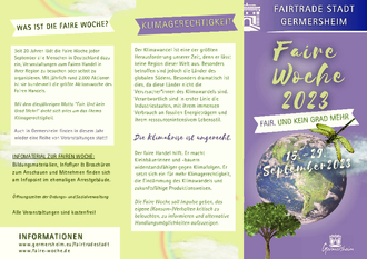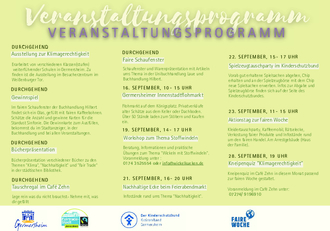 Die Faire Woche ist der größte bundesweite Aktionszeitraum zum Fairen Handel in Deutschland. In dem Zeitraum finden bundesweit Aktionen und Veranstaltungen statt, die auf den Fairen Handel aufmerksam machen. In diesem Jahr dreht sich unter dem Motto „Fair. Und kein Grad mehr“ alles um das Thema „Klimagerechtigkeit“.