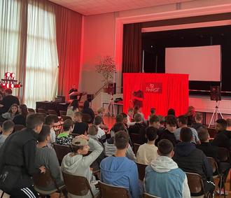 Der Lions Club Germersheim unterstützte durch ein lmprovisationstheater der Gruppe Theater RequiSlT aus Hattersheim die Richard-von-Weizsäcker Realschule plus bei der Suchtprävention. Durch die Initiative des Ensembles,,Theater RequiSlT" und des Lions Club, konnten die Schülerinnen und Schüler der 8. Jahrgangsstufe der Richard-von-Weizsäcker Realschule plus in Germersheim einen besonderen Vormittag erleben. Das Theaterstück ,,Erst Spaß gehabt, dann nachgedacht", bot eine unterhaltsame Kombination aus lmprovisationstheater und anschließenden Gesprächsrunden in jeder einzelnen Klasse, um sich mit dem Thema Sucht und Abhängigkeit in entspannter Atmosphäre auseinanderzusetzen. Zunächst konnten die jungen Zuschauer eine Theateraufführung erleben, die thematisch nichts mit Drogen zu tun hatte. Das Spannende dabei war, dass das Publikum Vorschläge machen durfte, mit welchen Begriffen die Schauspieler ihre Szenen umsetzen würden. Nach der Aufführung, die in der Aula der BBS stattfand, ging es dann klassenweise in Gesprächsrunden. Hierbei setzten sich die Schüler/innen mit dem Themenkomplex Sucht - Drogen - Abhängigkeit auseinander. Dadurch wurden die Jugendlichen zur Selbstreflexion angeregt und dank des direkten Gesprächs mit ehemaligen Betroffenen, konnte Verständnis für unterschiedliche Süchte vermittelt werden. Außerdem gaben die Schauspieler des Theaters RequiSlT Tipps zum eigenen Verhalten und zum Schutz vor Abhängigkeit. Ebenso wurden Wege aufgezeigt, wie man dem Teufelskreis entkommen kann. Alle Beteiligten erlebten einen kurzweiligen Vormittag. Die Zuschauer bekamen eine innovative Darbietung und eine spannende Alternative geboten, sich dem ernsten Thema Sucht zu nähern.