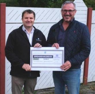 Werkleiter Craig McMain der Fa. Ardagh Group Germersheim (links im Bild) überreichte Bürgermeister Marcus Schaile einen Spendenscheck in Höhe von 15.000 Euro zugunsten der städtischen Kindertagesstätten. Foto: Freiwillige Feuerwehr Germersheim