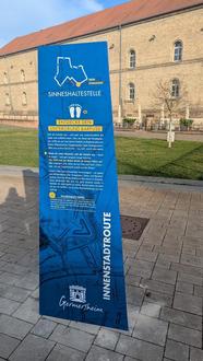 Die Innenstadtroute ist dabei bewusst mehr als eine reine Wegeführung. Sie steht unter dem übergeordneten Thema „Germersheim mit allen Sinnen erleben“. An insgesamt sieben Stationen laden sogenannte Sinneshaltestellen dazu ein, den Stadtraum bewusst zu erleben. Fünf dieser Haltestellen bilden die Infostelen, zwei weitere werden durch zusätzliche Hinweisschilder abgedeckt. Hier erhalten Besucherinnen und Besucher sowie Germersheimer Bürgerinnen und Bürger kleine Aufgaben oder Impulse, die dazu anregen, alltägliche Details, Geräusche, Eindrücke oder Orte neu wahrzunehmen und wertzuschätzen.