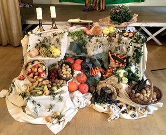 So wie jeder Apfel einzigartig ist, so sind wir Menschen auch einmalig und von Gott gewollt. Die Kinder der Tagesstätte „Regenbogen“ tanzten einen „Erntetanz“ um symbolisch Gott für die reiche Ernte zu danken. Evelin Diener begleitete musikalisch den Gottesdienst auf der Gitarre. Im Anschluss danach gab es für alle selbstgebackenen Apfelkuchen, gespendet von den Eltern, sowie Kaffee, Tee, Wasser und frisch gepressten Apfelsaft gespendet von der Gemeinde. Die Teams der beiden Tagesstätten „Arche Noah“ und „Regenbogen“ freuen sich über den gelungenen Erntedankgottesdienst.