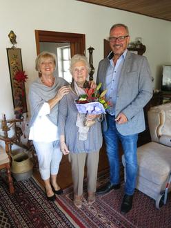 Foto: SNelles | Stadt Germersheim Unser Bild zeigt die sympathische Altersjubilarin zusammen mit ihrer Tochter und Germersheims Bürgermeister Marcus Schaile.