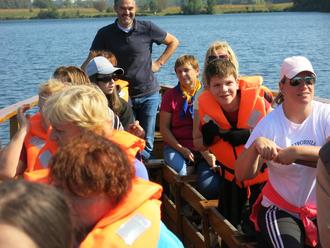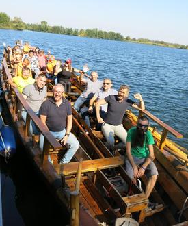 Freitagnachmittag hieß es für die ungarischen Gäste: „Leinen los und ran ans Ruder!“ In zwei Gruppen durften sie unter der erfahrenen Anleitung von Dieter Heim, Geschäftsführer des gemeinnützigen Vereins zur Förderung von Umweltbildung und römischer Geschichte, mit der „Lusoria Rhenana“, einer originalgetreuen Rekonstruktion eines römischen Flusskriegsschiffes aus der Spätantike, über den Neupotzer See fahren. Die Bauweise und der Antrieb durch die kräftemäßig geforderten Ruderer machten schnell deutlich, dass es nur vorwärts geht, wenn alle im Gleichklang arbeiten. Beide Gruppen schlugen sich wacker und hatten einen Riesenspaß.