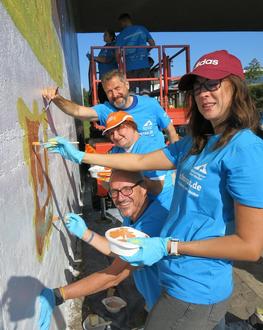 Andere Gäste und Gastgeber nahmen die Gelegenheit wahr, die neue Tierklinik im Rahmen einer fachkundigen, von Dr. Martina Van Suntum und ihrem Ehemann Dr. Arnulf Klasen vorgenommenen Führung zu besichtigen. Bürgermeister Marcus Schaile und sein Amtskollege Jószef Baracskai engagierten sich im Rahmen des Freiwilligentages der Metropolregion Rhein-Neckar „Wir schaffen was!“ und beteiligten sich, zusammen mit anderen Gästen und Gastgebern, an einer städtepartnerschaftlichen Mitmachaktion, indem sie die Unterführung, die direkt an der neuen Feuerwehr, der Tierklinik und der Süd-Pfalz Kaserne liegt, künstlerisch gestalteten.