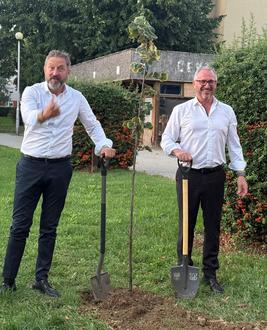 Beim Jubiläumsbesuch der ungarischen Freunde in Germersheim im April 2025 war im Stadtpark Fronte Lamotte als Symbol für die Stärke, Widerstandsfähigkeit und Beständigkeit der Freundschaft zwischen Germersheim und Zalaszentgrót eine Silberlinde gepflanzt worden. Auch nach dem Festakt in Zalaszentgrót krempelten beide Bürgermeister wieder die Ärmel hoch und pflanzten auch in der ungarischen Partnerstadt eine Silberlinde. Die Germersheimer Delegation hatte den ungarischen Freunden auch einen für die Pfalz typischen Baum, eine Edel- bzw. Esskastanie, mitgebracht, die nun ihren Platz im Schlosspark von Zalaszentgrót gefunden hat und mit Begeisterung und unter Mithilfe des Zalaszentgróter Bürgermeisters und der Schulleiterin Edina Czilingerné Antal von Zalaszentgróter Schülerinnen und Schülern gepflanzt wurde. So können die drei Freundschaftsbäume an drei verschiedenen Orten wachsen und gedeihen. Sie alle stehen für die Zukunft, in die auch die Städtefreundschaft zwischen Germersheim und Zalaszentgrót „hineinwachsen“ soll.