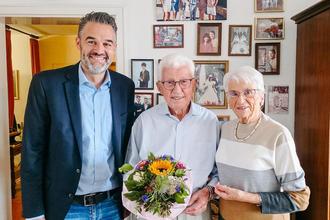 Elmar Diebold und seine Ehefrau Katharina freuten sich sehr über den Geburtstagsbesuch des Ersten Beigeordneten Dr. Sascha Hofmann (links im Bild).
