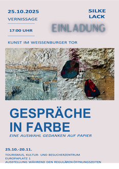 Mit ihrer Ausstellung „Gespräche in Farbe - Eine Auswahl Gedanken auf Papier“ präsentiert Silke Lack Werke, in denen sich Malerei und persönliche Reflexion begegnen. Im Mittelpunkt stehen Acrylbilder auf Leinwand, die durch den Einsatz von Mixed-Media-Techniken wie Pigmenten, Pastell, Marmormehl und Papier ihre besondere Tiefe und Ausdruckskraft erhalten. Ergänzt werden die Arbeiten durch eigene Texte, die Gedanken, Emotionen und künstlerische Prozesse sichtbar machen und den Betrachter auf eine persönliche Ebene mitnehmen.