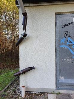 Die Stadtwerke haben Strafanzeige gestellt. Sachdienliche Hinweise geben Sie bitte an die Polizeiinspektion Germersheim. Inzwischen wurde auch noch die Dachrinne herausgerissen und zerstört.