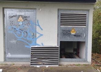 An Halloween wurde die Trafostation bei der S-Bahnhaltestelle Nolte/Süd stark beschädigt. An einer Tür wurde das Lüftungsgitter mit massiver Gewalt herausgebrochen.