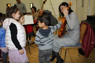 Die mitgebrachte, wertvolle und schöne Geige ist schon 300 Jahre alt und begeisterte die Kinder.