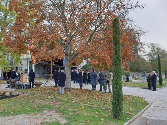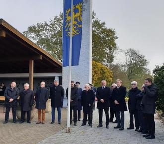 Nach dem Gebet mit Dekan Pfarrer Jörg Rubeck, erfolgte die Niederlegung der Kränze am Ehrenmal gemeinsam mit Bürgermeister Marcus Schaile und Ortsvorsteher Friedrich Rentschler sowie Vertreterinnen und Vertretern der Stadtverwaltung, der Bundeswehr, der US-Army sowie dem VdK Ortsverband Germersheim.