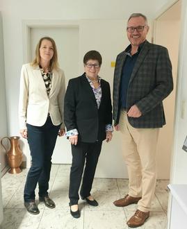 Dagmar Jantzer Immobilien gibt es bereits seit vier Jahrzehnten. Zu diesem besonderen Anlass gratulierte Bürgermeister Marcus Schaile der Firmeninhaberin Dagmar Jantzer-Kirchner (Bildmitte) und ihrer Mitarbeiterin Nicole Wagner recht herzlich. Foto: SMohr | Stadt Germersheim