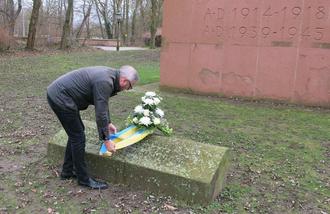 Zum Gedenken an die Holocaust-Opfer legte Germersheims Bürgermeister Marcus Schaile Ende vergangener Woche ein Blumenbukett auf dem Gedenkstein vor dem Ehrenmal im Ludwigspark nieder.