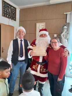 Der Nikolaus rief dann noch Frau Moser zu sich und überreichte ihr vom Motoryachtclub eine Spende über 200 Euro, die für das neue Schild/Logo am Gartenzaun der Kita benutzt wurde.