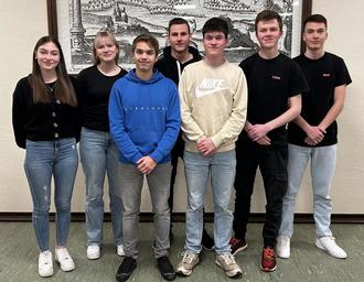 Der neue Vorstand mit Lara Müller, Nele Rühl, 1. Vorsitzender Erik Pfefferkorn, Moritz Köpke, David Keil, Lukas Dietz und Maximilian Schleuning (von links). Es fehlt auf dem Foto: Marie Faust.