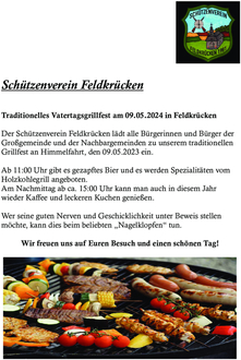 Der Schützenverein Feldkrücken lädt alle Bürgerinnen und Bürger der Großgemeinde und der Nachbargemeinden zu unserem traditionellen Grillfest