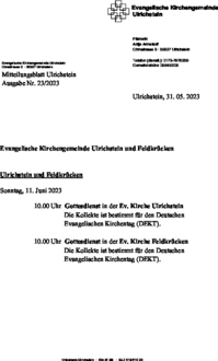 | Die Kollekte ist bestimmt für den Deutschen Evangelischen Kirchentag (DEKT). |