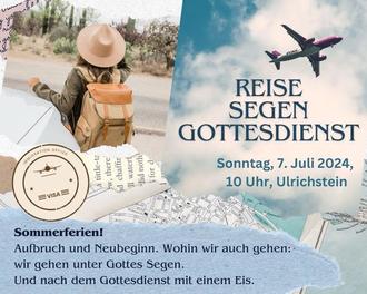 Die Sommerferien sind eine Zeit von großen Umbrüchen: für manche Schülerinnen und Schüler ist es die lang ersehnte große Pause, für viele Berufstätige die Zeit des großen Jahresurlaubs und andere wiederum freuen sich auf kurze Städtetrips. Für einige Jugendliche heißt es "School's out forever!" und für eine ehemalige Konfirmandin beginnt sogar das Abenteuer eines Schüleraustauschs ans andere Ende der Welt. Eins ist klar: die Sommerzeit ist die Zeit von Aufbruch und Neubeginn. Und wohin unsere Reise auch geht - wir gehen sie unter Gottes Segen! Herzliche Einladung zu einem besonderen Gottesdienst mit einem "Sommer-Reise-Segen" am 7. Juli 2024 um 10.00 Uhr in Ulrichstein - mit Segen und Eis für alle. Eure Pfarrerin Antje Armstroff