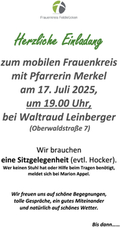 | 10:00 Uhr | Gottesdienst in Wohnfeld |
