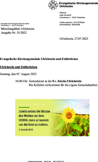 Informationen über das Mitteilungsblatt, Schaukasten und WhatsApp Gruppe „Kirche Ulrichstein“.