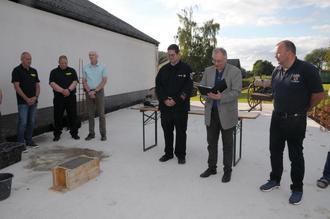 Nach den Ansprachen wurde der Grundstein gefertigt und Pfarrer Dr. Detlef Metz stellte anschließend Worte aus Jesaja Kapitel 43 seiner Ansprache. Darin steht unter anderem: „und wenn du ins Feuer gerätst, bleibst du unversehrt. Keine Flamme wird dich verbrennen!“