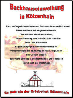 WG: Einladung Einweihung Backhaus Kölzenhain