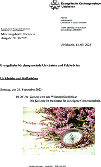 Über die Schaukästen unserer Gemeinden, die Whatsappgruppe „Kirche Ulrichstein“, die gleichnamige Facebookgruppe sowie im Internet unter www.kirche-ulrichstein.de. über Angebote, die bei Drucklegung des Mitteilungsblattes noch nicht feststehen!