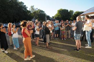 Nach der Stadtführung, an der rund 60 Personen teilnahmen, ging es zum Naturbadebiotop und hier wurde der Film auf einer Großleinwand im Rahmen des „kinoSommer hessen“ aufgeführt. Fast 250 Besucher waren gekommen um sich bei herrlichem Spätsommerwetter dem Film anzusehen. Für mache war es bereits die zweite oder sogar dritte Ansicht. Im Naturbadebiotop sei es aber etwas Besonderes, war zu hören.