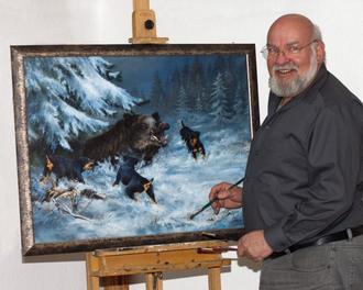 Vom 27.9 bis 27.10.2024 findet die letzte Veranstaltung für dieses Jahr im Museum im Vorwerk Ulrichstein statt. Das sehr erfolgreiche Jahr 2024 verdient einen krönenden Abschluss mit den unglaublich realitätsgetreuen Bildern des überaus bekannten Malers. Am Freitag den 27.9.2024 wird die Ausstellung um 19 Uhr feierlich eröffnet, hierzu sind alle Interessierten herzlich Eingeladen. Dieter Schiele wurde am 11. März 1950 in Frankfurt am Main in eine Künstlerfamilie hineingeboren. Sein Vater war von Beruf Musiker; eng verwandt ist Dieter Schiele mit dem österreichischen Expressionisten Egon Schiele. Schon als Kind verbrachte Dieter Schiele seine freie Zeit am liebsten damit, die Tiere aus dem heimischen Wald zu malen und zu zeichnen. Zunächst kam er jedoch dem Wunsch seines Vaters nach und wurde Schriftgießer. Seine weitere Entwicklung als Bauzeichner und Bautechniker kam seiner eigentlichen Berufung als Maler schon näher. Schon Ende der siebziger Jahre malte Dieter Schiele im Auftrag von Mitgliedern führender Familien aus Saudi-Arabien und den Vereinigten Emiraten. Auch im europäischen Raum wurden schnell adlige Familien und Fürstenhäuser seine interessierten Kunden. Ausstellungen mit großen Besucherzahlen fanden unter anderem statt in Frankfurt, Dortmund, Essen, Hannover und München. Auch im Ausland konnte Dieter Schiele seine Bilder erfolgreich ausstellen, so zum Beispiel in Paris, Brüssel, Genf, Stockholm, Abu Dhabi und Riad. 1998 wurde Dieter Schiele mit dem Kulturpreis des Deutschen Jagdschutzverbandes ausgezeichnet. In den Bildern von Dieter Schiele steht oft das ungezähmte, wilde Tier im Mittelpunkt, das erhobenen Hauptes, in aller Stille und voller Würde, mit aller Selbstverständlichkeit dem Betrachter entgegenblickt. Der Künstler sagt dazu: „Seine majestätische Haltung und sein direkter Blick lassen in mir das Gefühl seiner Überlegenheit und seiner Unabhängigkeit aufsteigen. Es ist die innere Freiheit des Tieres, die sich mir aufdrängt und der farblich zum Körper des Tieres abgestimmte Hintergrund, das Eingebettet sein in den ursprünglichen Lebensraum, lenken den Blick des Beobachters nicht vom Wesentlichen ab.“ Beim Betrachten der Bilder ist es nicht möglich, sich im Nebensächlichen zu verlieren und doch ist auch das Nebensächliche dem Blick des Malers nicht entgangen. Es sind der Blick des Tieres, die angespannten Sehnen und Muskeln, die Sprungbereitschaft oder das in sich ruhende Tier, das vertraut, die die Aufmerksamkeit fesseln und die den Betrachter konzentriert zum Mittelpunkt des Bildes blicken lassen. Über seine große Leidenschaft Afrika sagt Dieter Schiele: „Der afrikanische Sternenhimmel, der Duft, die Melodie der vielseitigen Landschaften, die Laute der Tiere - das alles hat mich in seinen Bann gezogen. Leider sind die Wochen in Afrika immer zu kurz, um die einzigartige Natur zu studieren und zu genießen. Was bleibt, sind die Träume, die tollen Erlebnisse und die Sehnsucht, Wiederzukommen. Dieter Schiele ist Realist; er hat sich die Natur vertraut gemacht und sein Leben danach eingerichtet. Seine Arbeit ist zugleich sein Leben und Ausdruck seiner Liebe und Dankbarkeit gegenüber den Dingen, die ihn umgeben. Seine großartige Erfahrung gibt Dieter Schiele in Zeichen- und Malseminaren weiter.