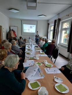 Die Referentin, Frau Abbas von den Digitalen Engeln Thüringen, erläuterte anschaulich wie die elektronische Patientenakte funktioniert und wie sie die Gesundheitsversorgung verbessern kann. Die Seniorinnen erfuhren, wie sie ihre Gesundheitsdaten sicher speichern und verwalten können.