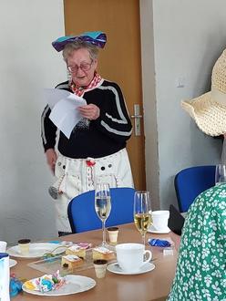 Mit einem zünftigen „Helau“ begrüßten sich die Senioren aus Jecha bei ihrer monatlichen Zusammenkunft im Haus der Vereine. Das Treffen stand unter dem Motto „Wir feiern Fasching“. Alle Teilnehmer hatten sich dem Thema entsprechend gekleidet. Man konnte die schönsten Kopfbedeckungen und Kostüme bewundern. Zur Erinnerung wurde jeder fotografiert. Wie immer war die Tafel reichlich gedeckt und natürlich gab es neben dem selbstgebackenen Kuchen und Süßigkeiten für jeden einen Pfannkuchen, der ja bei keiner Faschingsfeier fehlen darf. Zu Beginn der Veranstaltung wurde den Geburtstagskindern gratuliert und noch Organisatorisches besprochen. Wir hatten zwar keine Bütt, wie das bei Faschingsveranstaltungen üblich ist, aber die Sketsche und Beiträge, die vorgetragen wurden, kamen sehr gut an und alle hatten viel Spaß. Es wurde sehr viel gelacht, besonders bei dem Vortrag über Rös`chen, die sich ein heißes Hös`chen kaufen wollte. Natürlich wurde das Hös`chen von Rös`chen von Bärbel Gemsjäger vor geführt und mit sehr viel Beifall bedacht. Mit einem Glas Sekt und Eierlikör wurde angestoßen.