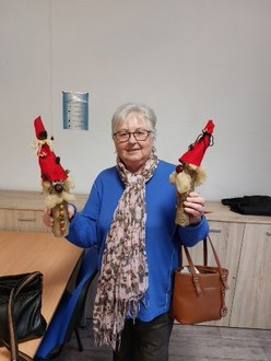 Frau Wilck und Frau Hufnagel vom Verein Natura 2000 - Station Possen hatten sich sehr gut auf diesen Vormittag vorbereitet. Frau Wilck stellte kurz diesen Verein vor. Natura 2000 - Station Possen, ist ein Ort in Sondershausen, wo Kindern, Jugendlichen und Erwachsenen der Naturschutz und die Umweltbildung näher gebracht wird. Anschließend wurde den Senioren erklärt, was alles aus den vorhandenen Bastelmaterialien hergestellt werden kann. Einen Weihnachtswichtel zu basteln, fand bei vielen Senioren großen Zuspruch. Es entstanden die schönsten Figuren. Unter den geschickten Händen einiger Frauen entstanden kleine gehäkelte Weihnachtsbäumchen und Weihnachtssterne aus Papier. Ich bin mir sicher, dass diese in diesem Jahr einen weihnachtlichen Strauß schmücken werden. Alle waren mit Feuereifer dabei und die Zeit verging wie im Fluge. Stolz wurden die hergestellten Bastelarbeiten begutachtet. Manche Oma wird sicher zu Hause mit den Enkelkindern weitere Sterne basteln.